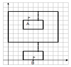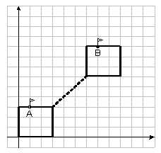 Последние две строки содержат по два целых числа: xA, yA — координаты точки A и xB, yB — координаты точки B, соответственно (–104 ≤ xA, yA, xB, yB ≤ 104). Гарантируется, что точки A и B находятся в окопах. Все координаты заданы в метрах.